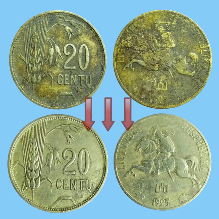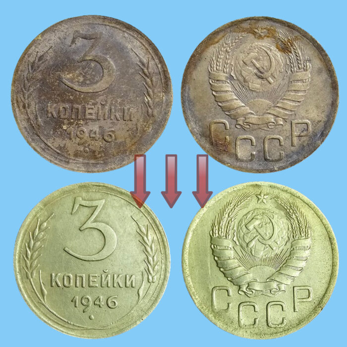 Priemonė puikiai tinka 1926-1957 metų TSRS (Tarybų Sąjungos) gamybos monetų valymui (nominalas 1, 2, 3 ir 5 kapeikos), kurios buvo pagamintos iš aliuminio bronzos.