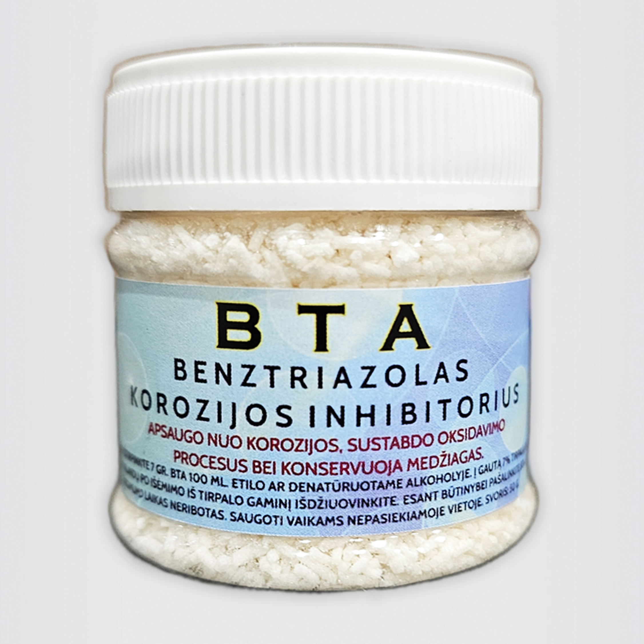 Naudojimas: ištirpinkite 7 gr. BTA 100 ml. Etilo ar denatūruotame alkoholyje. Į gautą 7% tirpalą įdėkite gaminį keletai valandų. Po išėmimo iš tirpalo gaminį išdžiuovinkite. Esant būtinybei pašalinkite BTA likučius. Tinkamumo laikas neribotas. Saugoti vaikams nepasiekiamoje vietoje. Svoris: 30 g.