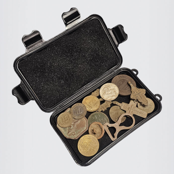 Tvirta ir praktiška radinių dėžutė, sukurta specialiai metalo detektorių mėgėjams. Ji puikiai tinka saugiai laikyti monetas, ženkliukus, sagas ir kitus smulkius radinius, rastus paieškų metu. Kompaktiškas dydis leidžia patogiai nešiotis dėžutę kuprinėje ar kišenėje, o patikimas uždarymas apsaugo radinius nuo pametimo. Puikus pasirinkimas kiekvienam ieškotojui, norinčiam tvarkingai ir saugiai laikyti savo radinius.