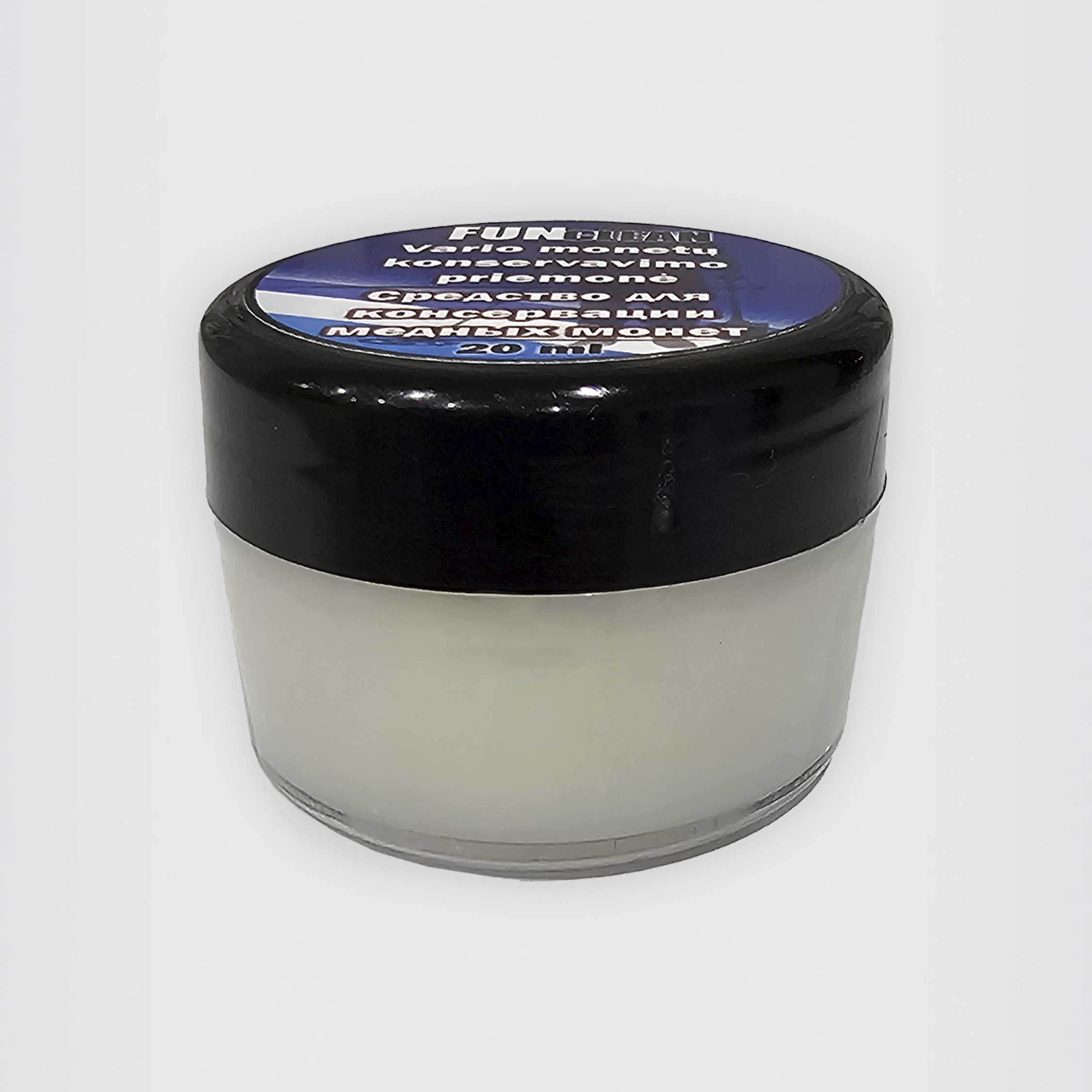 Konservantas skirtas monetoms saugoti. Sukuria apsauginę plėvelę ant monetos paviršiaus, kuri apsaugo nuo aplinkos poveikio (drėgmės, saulės spindulių ir pan.). Suteikia blizgesį ir paryškina monetos reljefą.