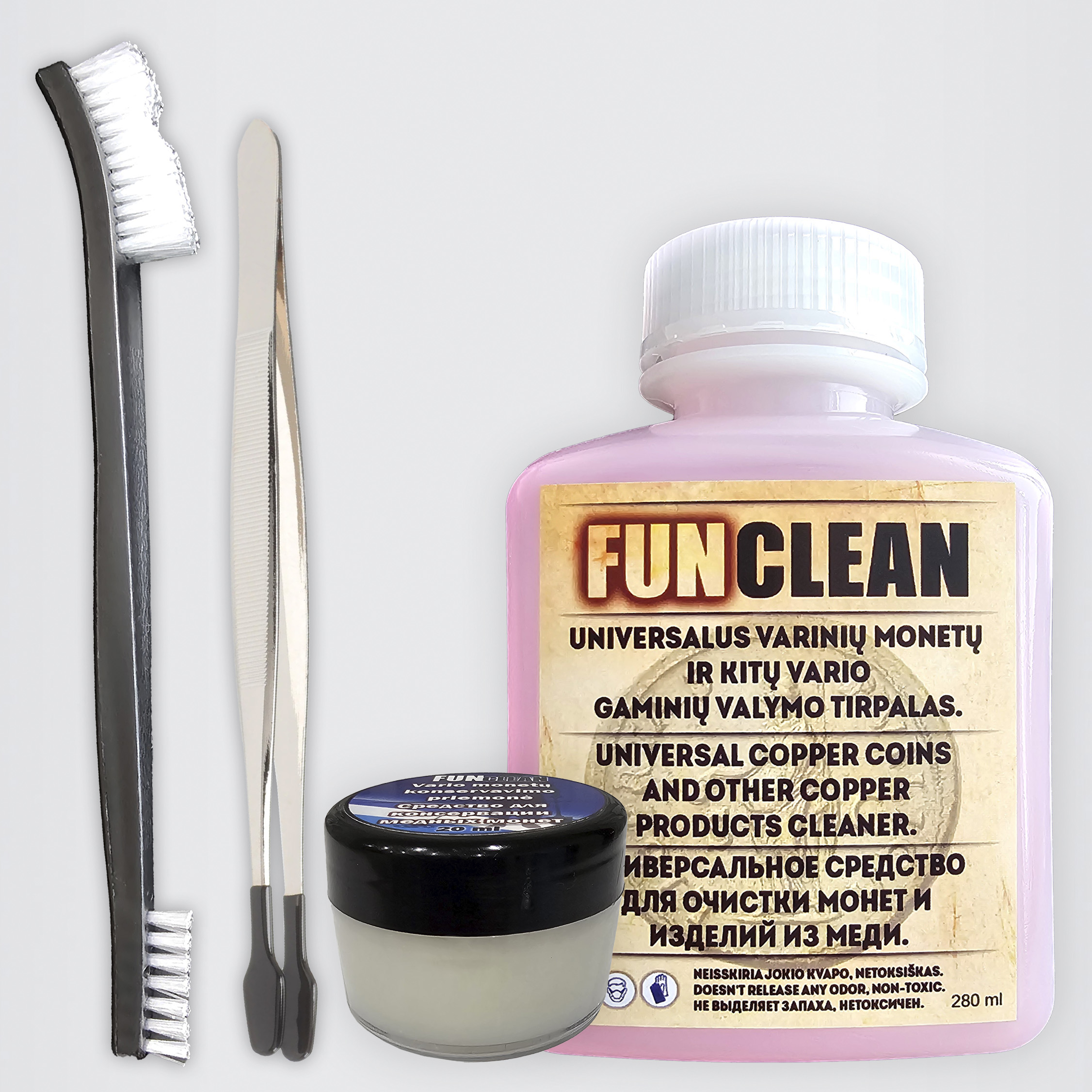 Toks pincetas padeda lengvai ir saugiai dirbti su valomaisiais daiktais (monetos, kryžiukai, sagos, emblemos ir pan.), nepažeidžiant daikto paviršiaus.